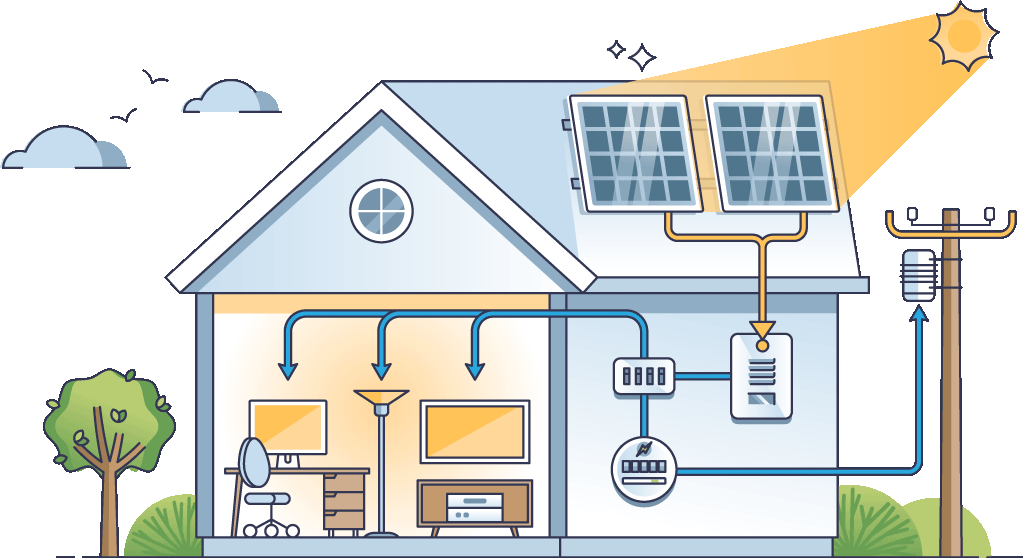 日中に発電した電気はご自宅の家電製品にお使い頂けるほか、余った電気は電力会社に売却することができます。