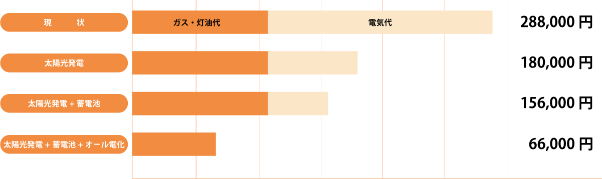 太陽光発電にすれば、光熱費は一気に約1/2に。